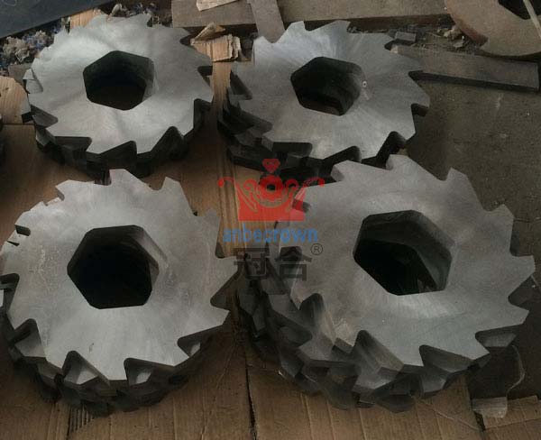 撕碎機(jī)刀片種類主要包括單軸撕碎機(jī)刀、雙軸撕碎機(jī)刀、四軸撕碎機(jī)刀 單軸撕碎機(jī)刀常用的材質(zhì)為SKD-11,經(jīng)過真空淬火,其硬度與耐磨程度相對普通材質(zhì)較高,硬度達(dá)到60-62HRC,更好的發(fā)揮了材料的物理特性,大大提高了使用壽命。雙軸撕碎機(jī)和四軸撕碎機(jī)主要用來破碎各種塑料、木材、金屬、廢舊輪胎、廢舊家電、報(bào)廢汽車、廢舊線路板等,其工作效率比普通粉碎機(jī)高4-5倍。如今在資源回行業(yè)收應(yīng)用的非常廣泛,刀片的主要材質(zhì)有:W5Si6、SKD-11、Cr12MoV、LD、D2等,其中Cr12MoV為廣泛使用,Cr12MoV的刀片使用壽命和加工成本可滿足各行業(yè)的使用。 撕碎機(jī)一般可用于撕碎較難破碎的塑料、橡膠、纖維、紙張、木材、電器件、電纜等實(shí)心物料,如:水口料,膠頭、PET瓶、硬紙板、電路板、木頭、塑料桶等。有時也要破碎特別硬的物料,如:尼龍、ABS、PC等高強(qiáng)度工程塑料所以對刀片的要求也比較高,本公司生產(chǎn)的撕碎機(jī)刀片是采用日本SKD11為材料,做到耐磨而且不崩刃.